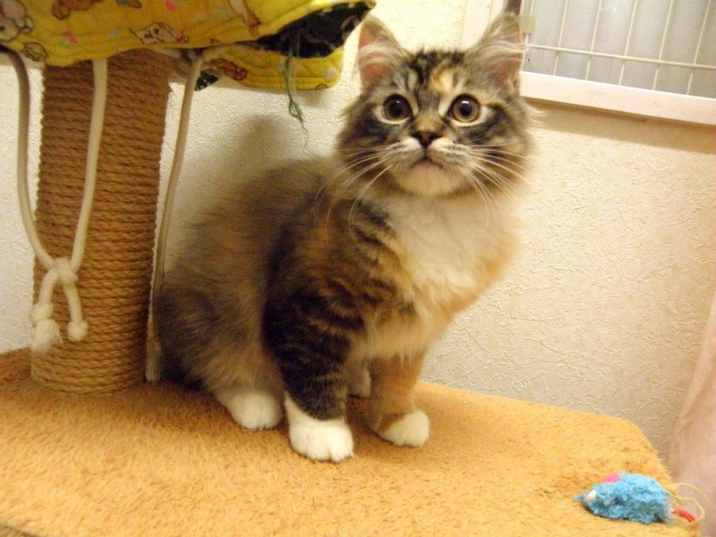 毛色:ブラウンパッチドタビー&ホワイト(長毛)